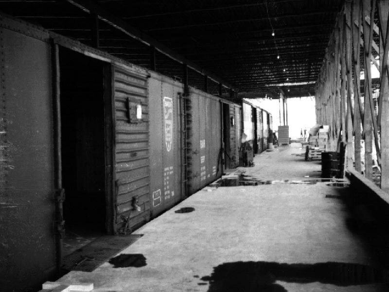 Description: Construction of a new shipping and storage building. Shows the interior of a train shed at the Madawaska Maine Fraser Paper Limited mill.