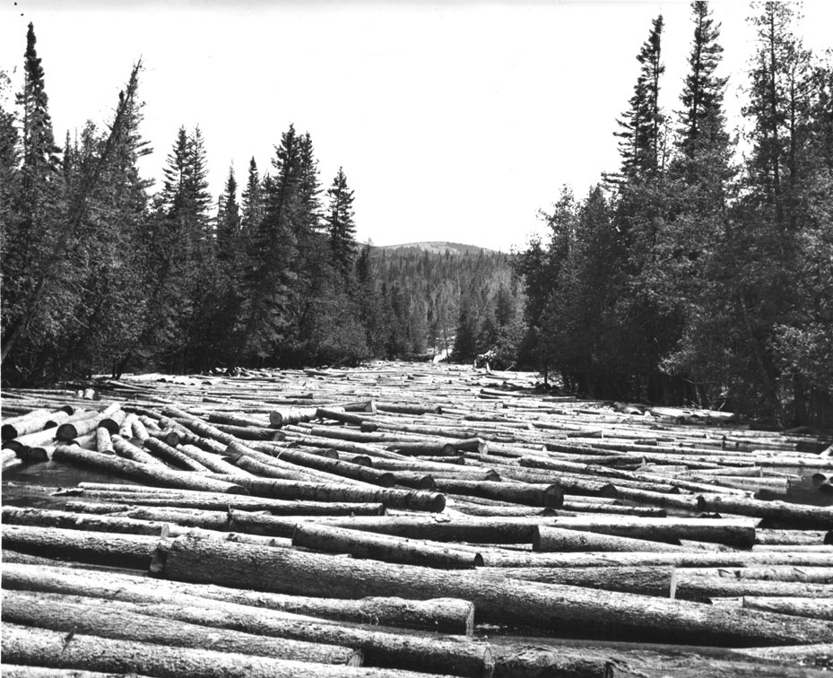 Timber drive consisted of floating logs on waterways from the forest to the mills, because of the absence of major roads and railways.